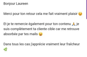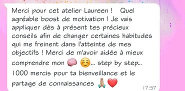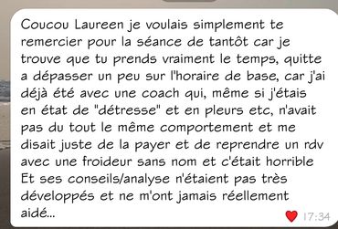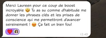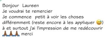 Merci de tout mon cœur Laureen, tu as fait basculé ma vie et je ne vais jamais, jamais oublié le chemin qu'on a fait ensemble. Je recommande Laureen à 100% si tu es prête à changer ta vie et ta manière de voir les choses comme tu le veux vraiment.