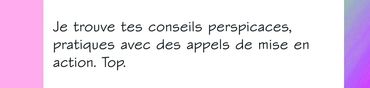 "J'arrive à me déconnecter de mon business sans culpabiliser, à prendre une journée off, j'ai même repris le sport. Je communique mieux avec mes clientes et mes collaboratrices. Les résultats sont au delà de ce que j'imaginais et en très peu de temps !"